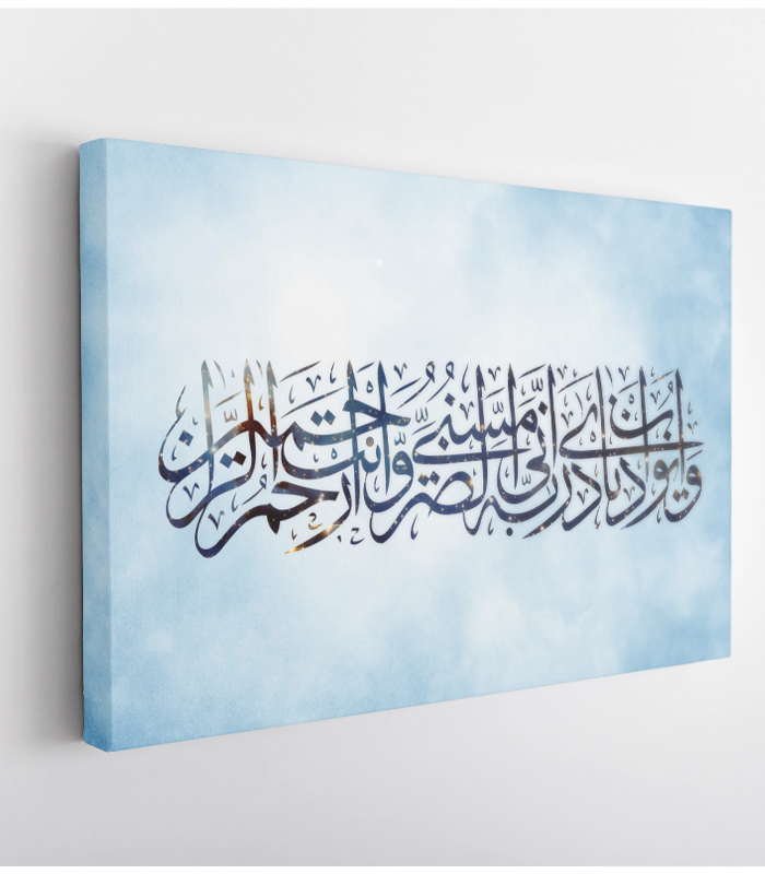 Elegant Quranic wall art printed on high-resolution canvas and mounted on a wooden frame. This artwork adds a meaningful and artistic touch to any space.