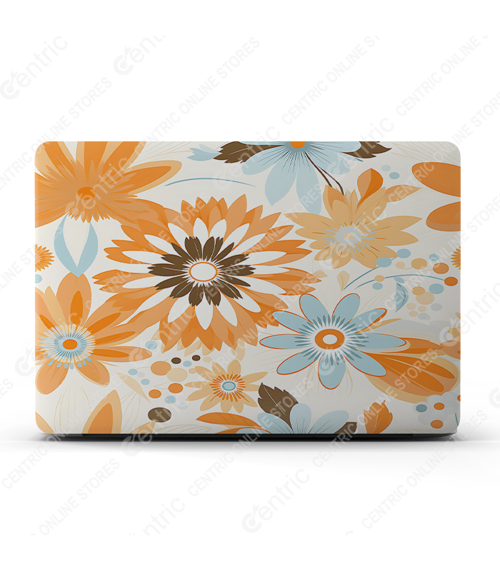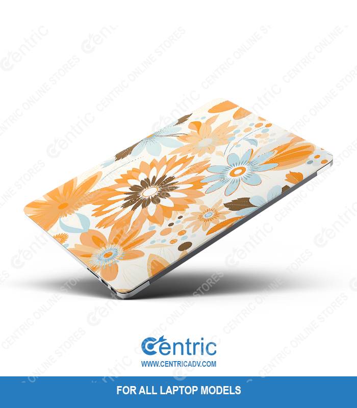 Custom-fit vinyl laptop skin with retro floral design