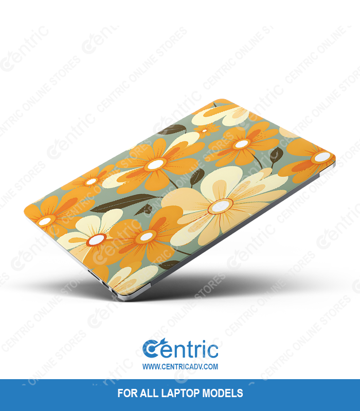 Custom-fit vinyl laptop skin with retro floral design