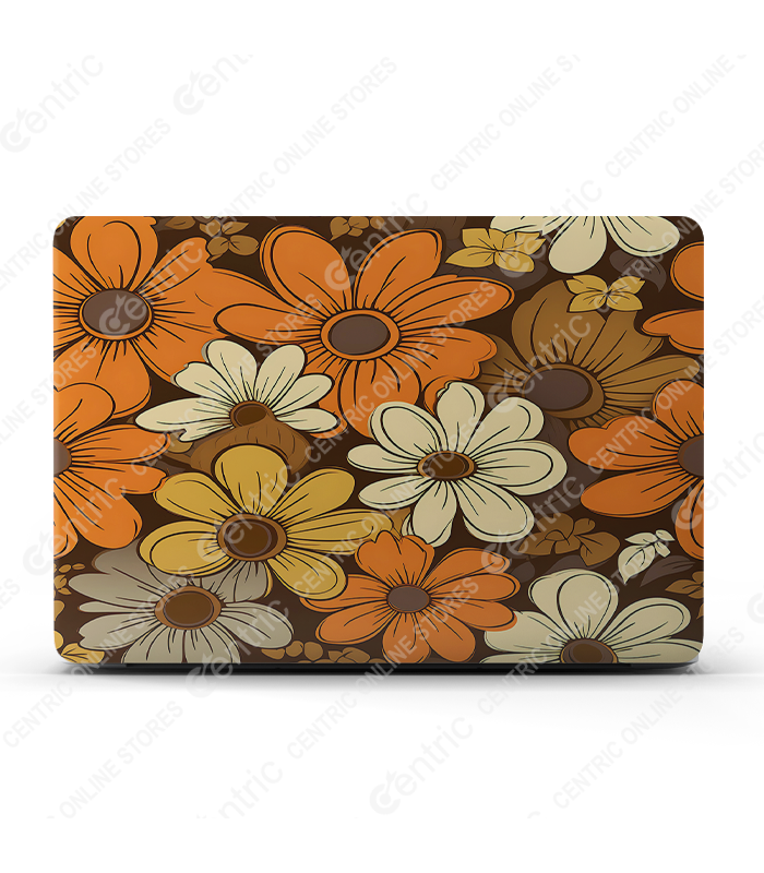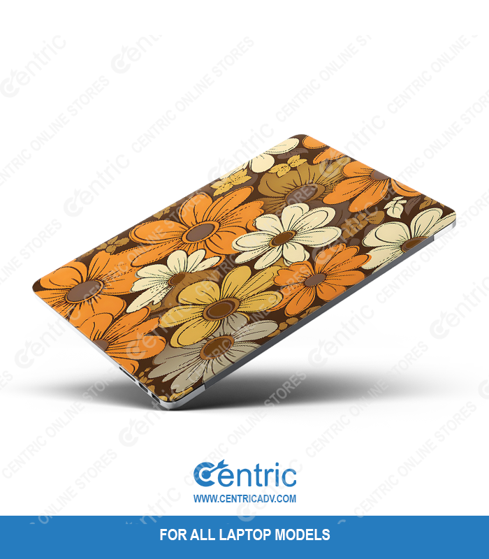 Custom-fit vinyl laptop skin with retro floral design