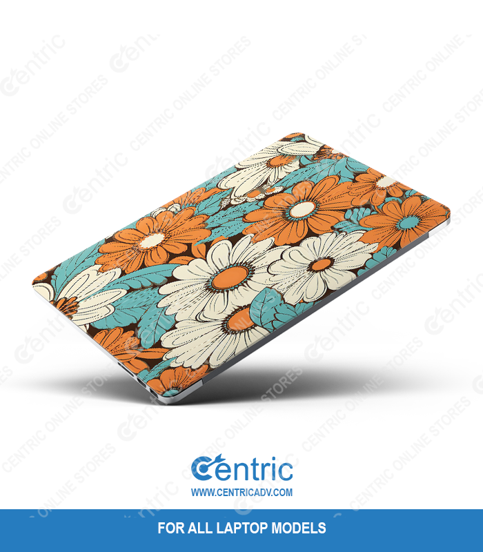 Custom-fit vinyl laptop skin with retro floral design